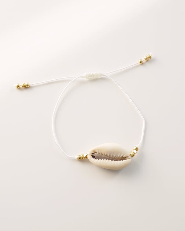 夏気分抜群な貝殻モチーフのブレスレット。程よいボリュームが目を惹くデザインです。